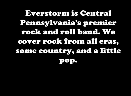 Everstorm has been rocking througout Central Pennsylvania for 4 years. We bring together a lineup of seasoned musicians with a passion for every style of music, backed by 70 years of combined experience performing in both cover and original bands throughout Northeastern and Central Pennsylvania.